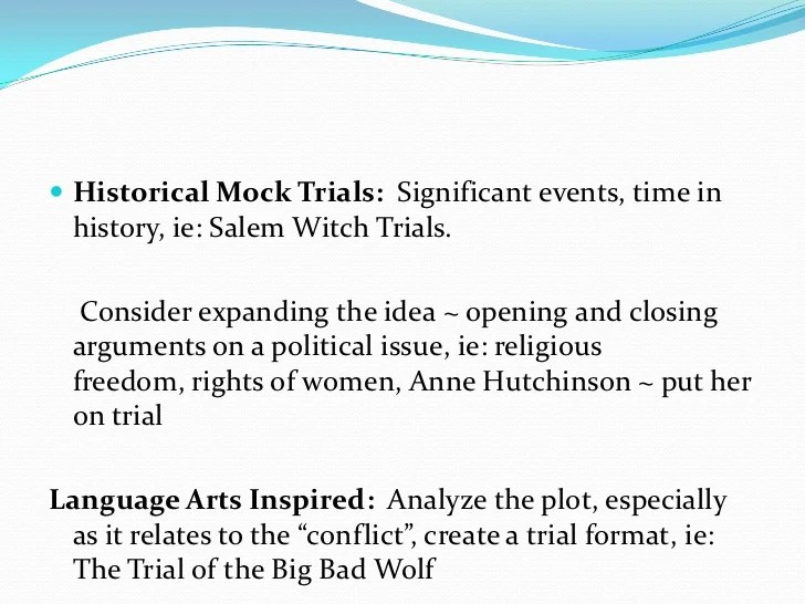 Mock trials conducted within one or two class periods help students learn about courts . Brian marshall criminal mock trial district . In our mini mock trial below, charles agrees to follow the rules, . Discuss the students' roles as jurors, i.e., deciders of the facts, when there is more than one version of what happened. And simplified rules of evidence) and the mock trial teacher coach manual. Trials of varying lengths in the street law text and teacher's manual, as. In this beowulf worksheet, students identify a crime and prepare the prosecuting and defense case to present to the class jury . Mock trials conducted within one or two class periods help students learn about courts. View mockii.pdf from law misc at lehigh senior high school. Participating with judges, lawyers and teachers in mock trials not only helps.